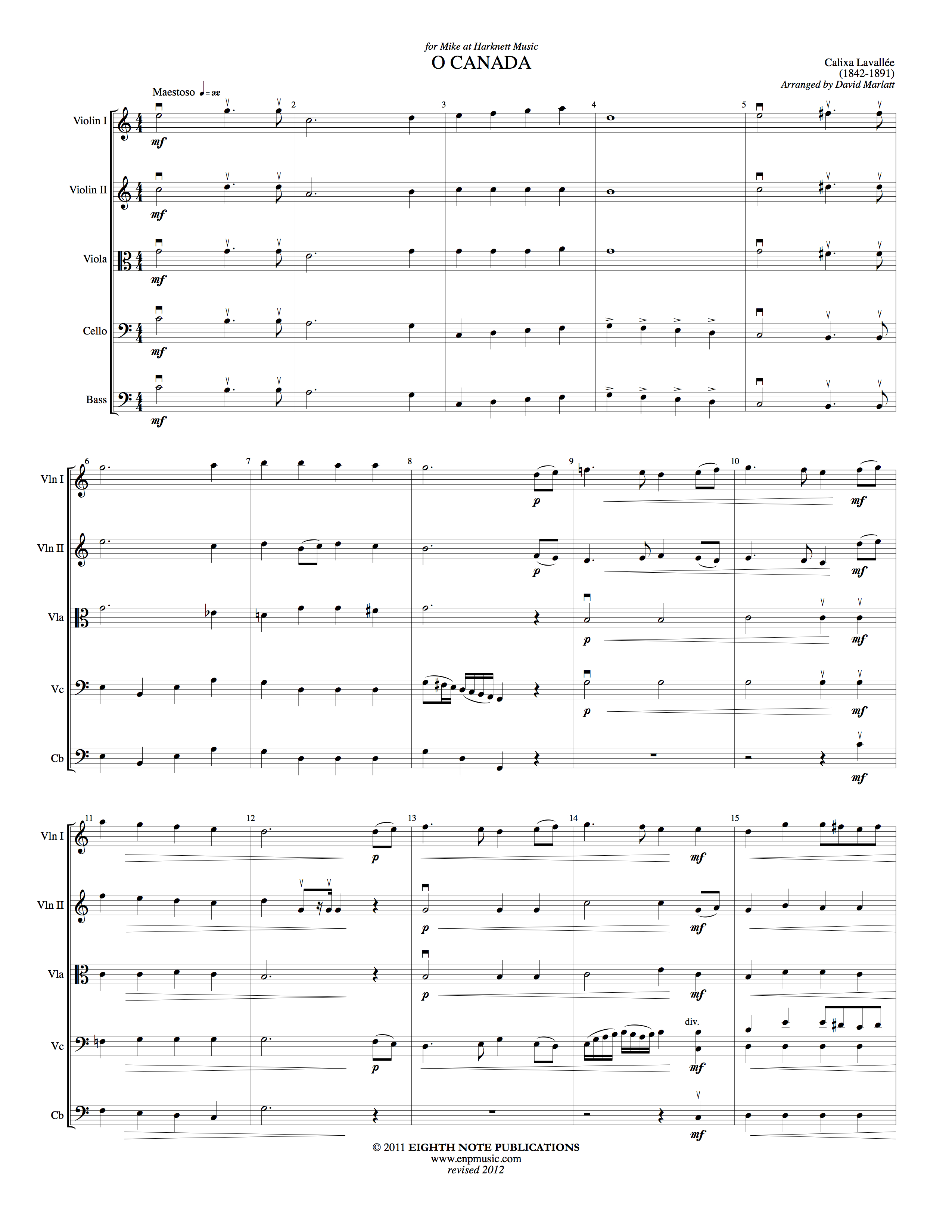 This is a colorful and ornate version of the Canadian national anthem for full orchestra. For a string orchestra version, there are two that can be found in our catalog: STR111(grade 3) and STR114 (grade 1.5).