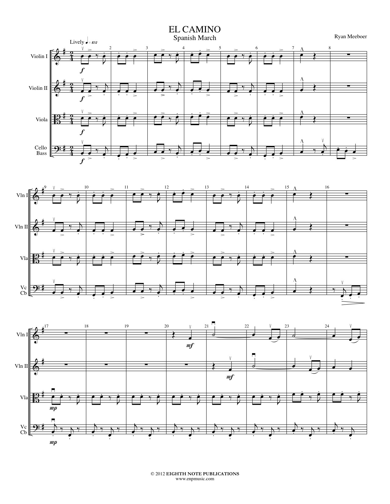 El Camino (The Road) is a Spanish march composed in the traditional style of a pasodoble. This piece is fast paced and energetic from start to finish and sounds more complicated than it seems! This is something a little different in the march category that will have audiences tapping their toes.