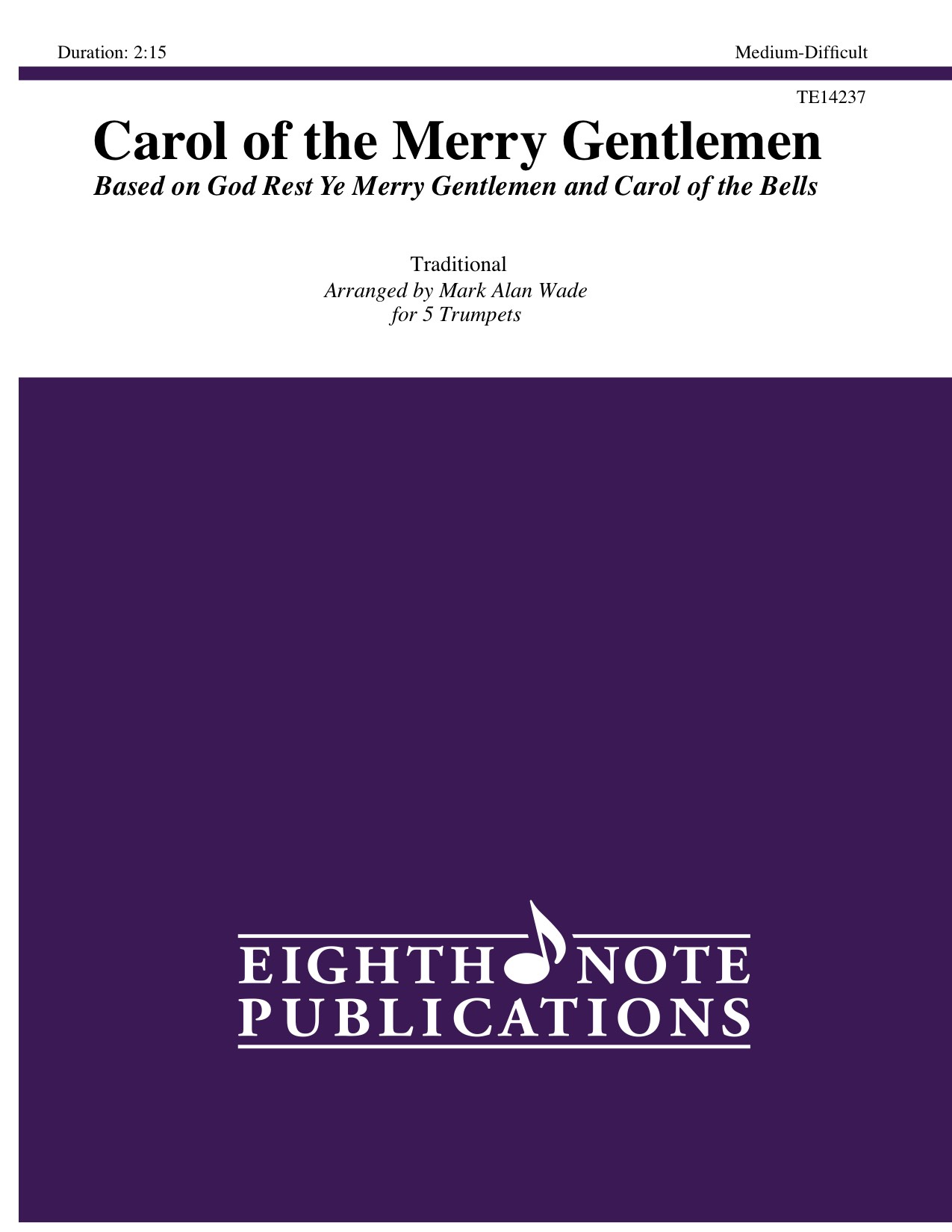 Carol of the Merry Gentlemen is a clever pairing of God Rest ye Merry Gentleman and Carol of the Bells. Beginning with an ethereal echo of Carol of the Bells, the tumpets present eerie fragmentations of God Rest Ye in cannon and in hocket with increasing rhythmic complexity and tension. The Allegro that results intersperses one tune on top of the other in turbulent hockets and canons as well. Full of surprising effects, such as subito mute changes and playing into the stand, this piece brings new life to these beloved carols. |