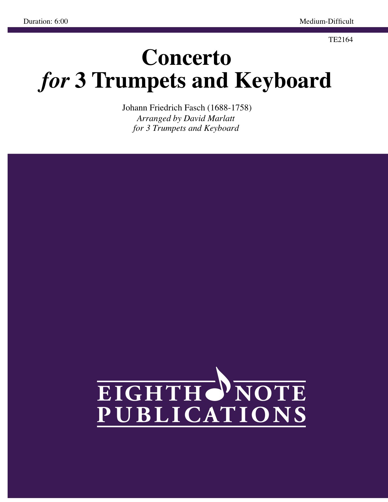 This famous piccolo trumpet solo has been recorded by many trumpet soloists. The original work is scored for solo trumpet, 2 oboes and strings. In this arrangement the instrumentation has been altered slightly for 3 trumpets and keyboard. The solo part remains fairly close to the original and the oboe parts have been distributed between the remaining trumpets and the keyboard. Also included in this arrangement is a separate keyboard score in B-flat which means performance on b-flat trumpets is now possible.