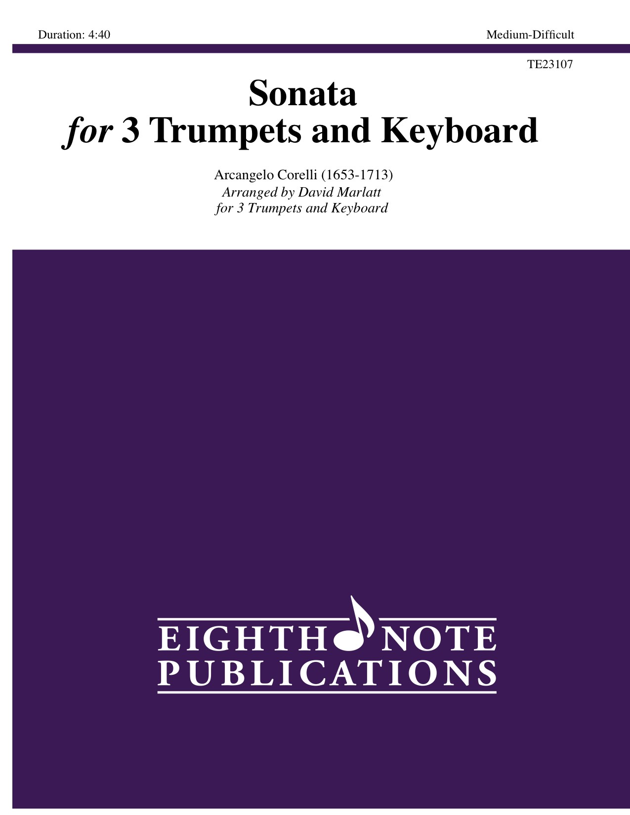 This famous piccolo trumpet solo has been recorded by many trumpet soloists. The original work is scored for solo trumpet, 2 violins and continuo. In this arrangement the instrumentation has been altered slightly for 3 trumpets and keyboard. The solo part is the original trumpet line and the violin parts have been distributed between the remaining trumpets and the keyboard. Also included is a separate keyboard score in B-flat which means performance on B-flat trumpets is now possible. |