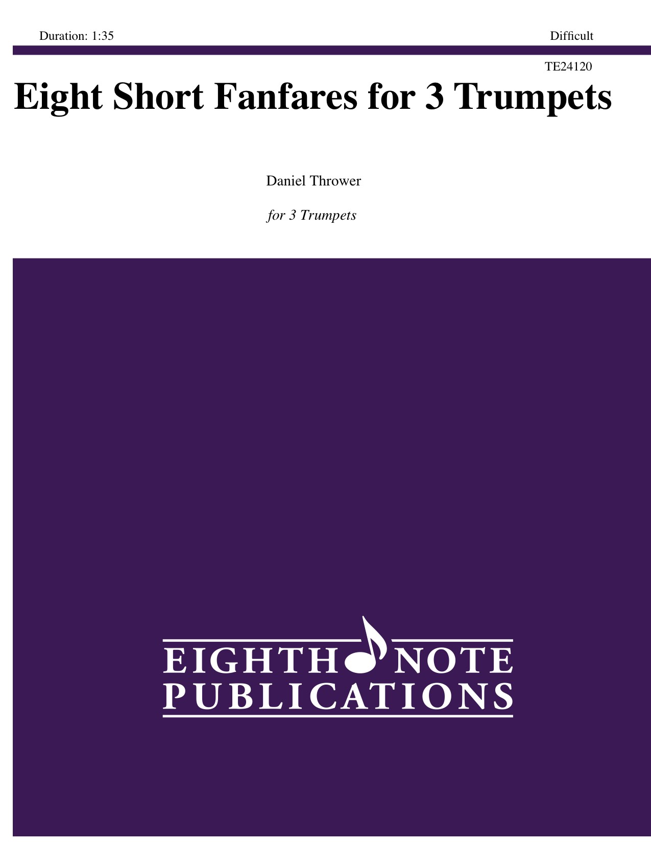 These eight short fanfares, for 3 trumpets, were written as a result of my fascination with historical instruments. They were a type of exercise in composing for the limited medium of natural trumpets, though they lay well on modern instruments. There is a good variety of "affects" from fanfare to fanfare, making their usefulness plentiful. Since they are all short, they come in very handy for award banquets, or any event that could be spruced up by an ornate announcement or two. |