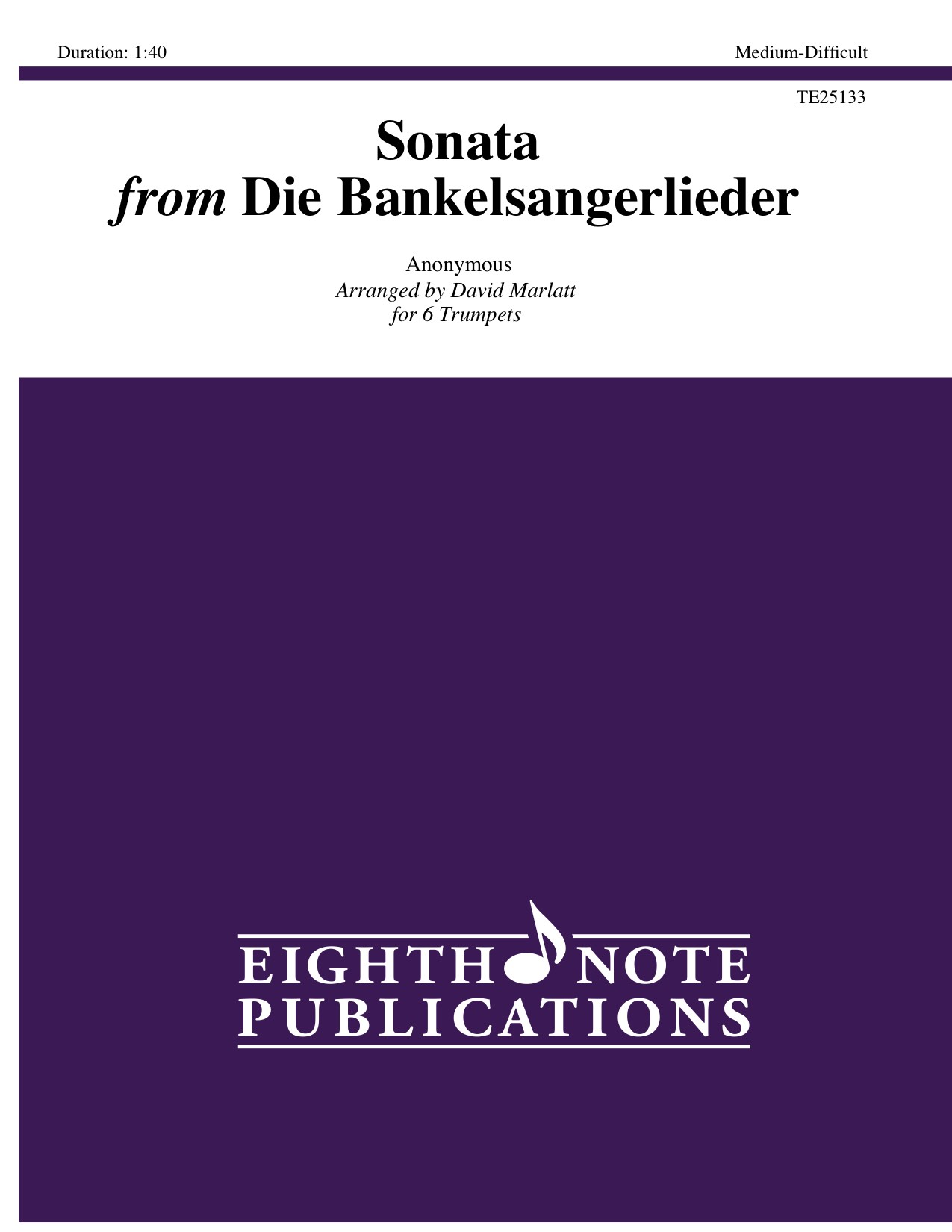 This piece is a standard in the repertoire for brass quintet thanks to an arrangement by Robert King. After Robert King published his arrangement it was thought that it may have been written by Daniel Speer. Regardless of who wrote it, the great antiphonal writing suits 6 trumpets (2 choirs of 3 trumpets each). It has been transposed up from the original so an optional Eb trumpet part has been provided for Trumpet 1. |