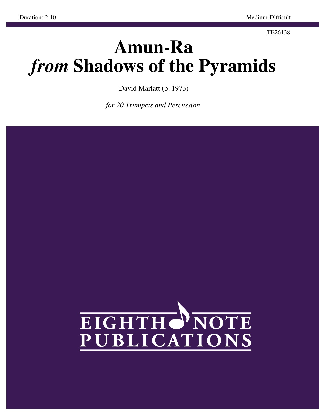 This is the final section of a 14 minute work for 20 trumpets, piano and percussion. This piece was commissioned by Kevin Eisensmith of the Indiana University of Pennsylvania to add a work, substantial in length, to the repertoire of the trumpet ensemble. He requested that there be no doubling of parts and a minimum of antiphonal effects used. The resulting piece attempts to demonstrate the various colours available to the trumpet ensemble. Extensive use of mutes and 5 flugel horns helps to add variety to the timbre. The piece is based on the Egyptian story of Ra, the Sun God, one of the most important characters in their mythology. |