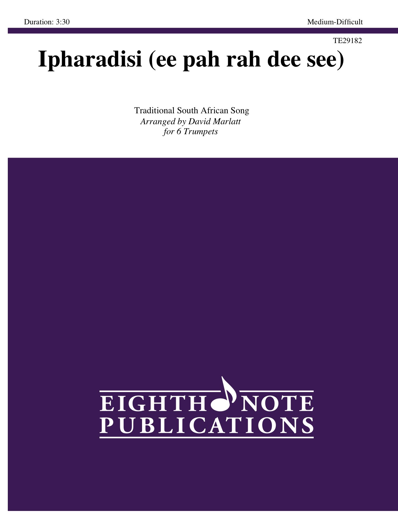 This is a fun and rhythmic South African folk song and has been arranged for 4 trumpets, 2 flugel horns, optional percussion and optional choir. It could be performed with or without choir or it could involve members of the ensemble singing. Sections could also be repeated as many times as desired to allow for extensive hand drumming by the percussionists, members of the group or even selected members of the audience! |