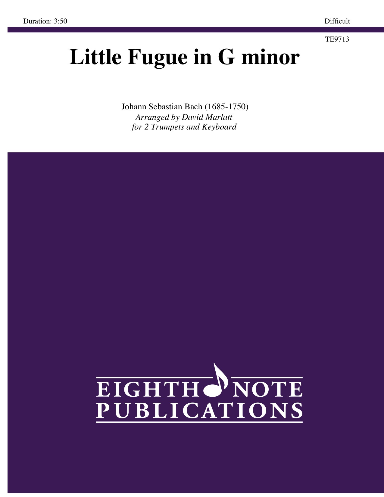 Similar to the Toccata and Fugue in D minor, this incredibly famous organ solo has been adapted for 2 trumpets and organ. The organ pedal work has been greatly reduced to be more accessible to more organists and so that this arrangement could be learned more quickly by all. Trumpet parts have been provided in C, B-flat, and E-flat to provide options for the players. This combination of players works just as well as the various transcriptions for quintet that have been done. |