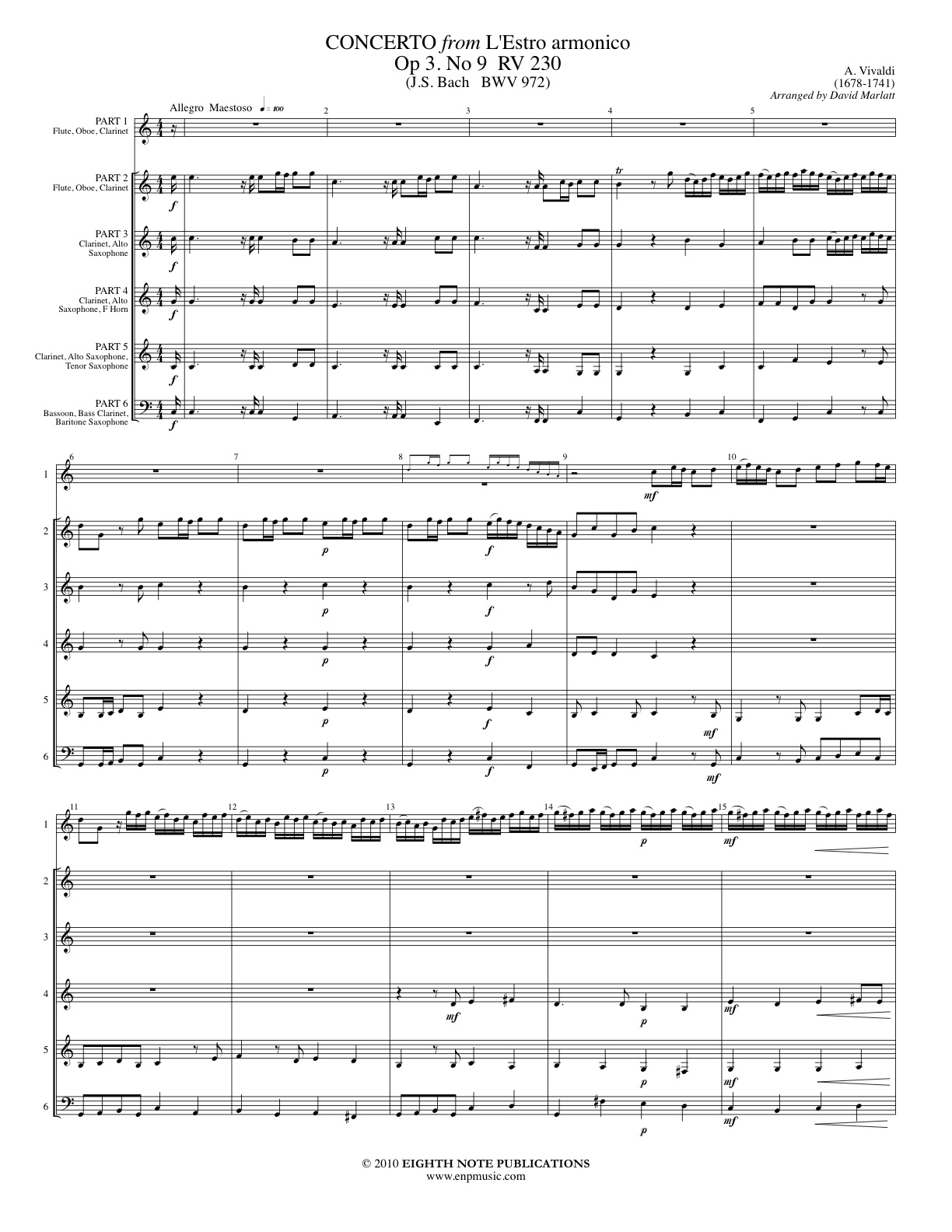PARTS: PART 1 - Flute, Clarinet, Alto Saxophone PART 2 - Flute, Clarinet, Alto Saxophone PART 3 - Flute, Clarinet, Alto Saxophone PART 4 - Clarinet, Alto Saxophone, F Horn PART 5 - Clarinet, Alto Saxophone, Tenor Saxophone PART 6 - Bass Clarinet, Bassoon, Baritone Saxophone |