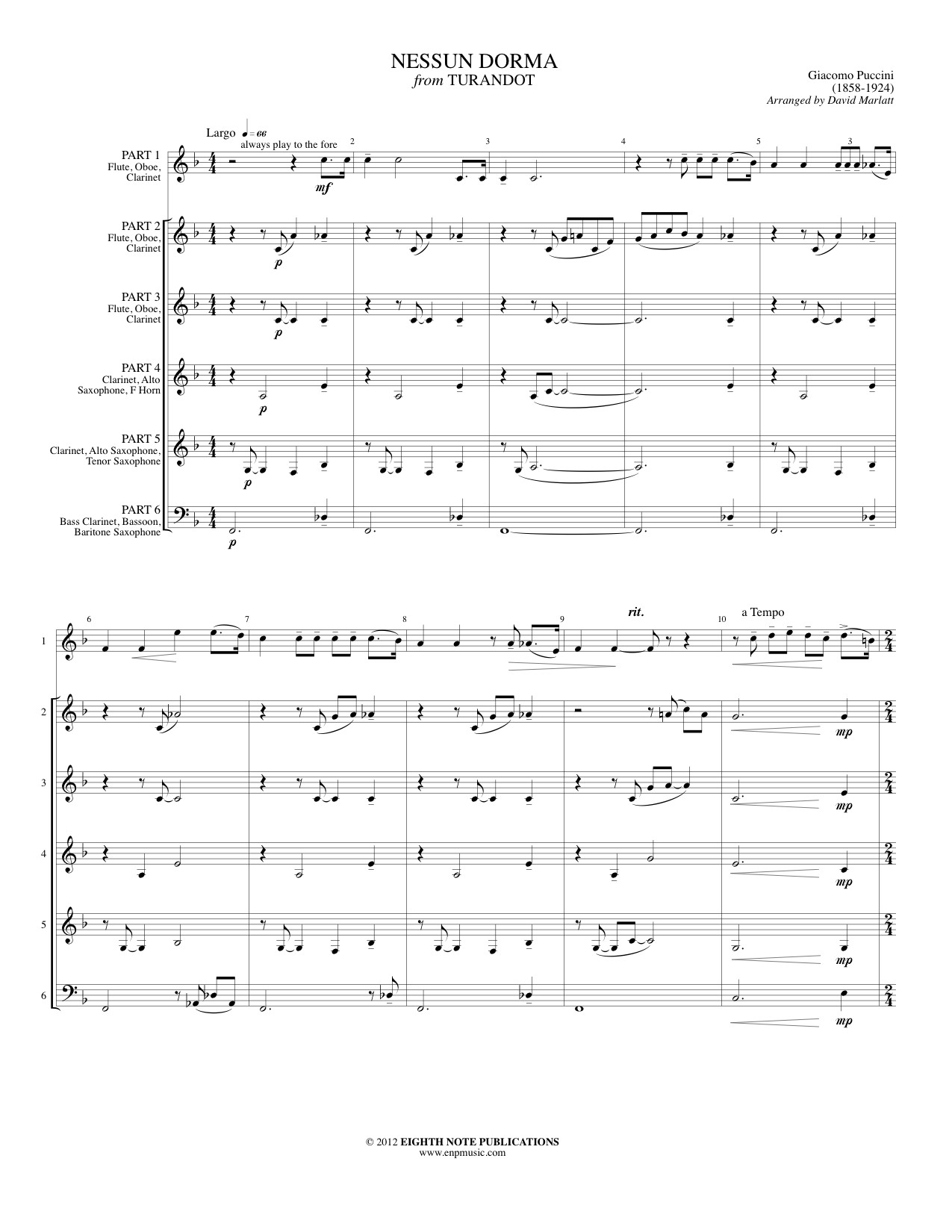 This incredible famous tenor aria has been adapted by many wind soloists. This interchangeable woodwind ensemble allows for a variety of players to set the solo line with a full, lush accompaniment supporting.