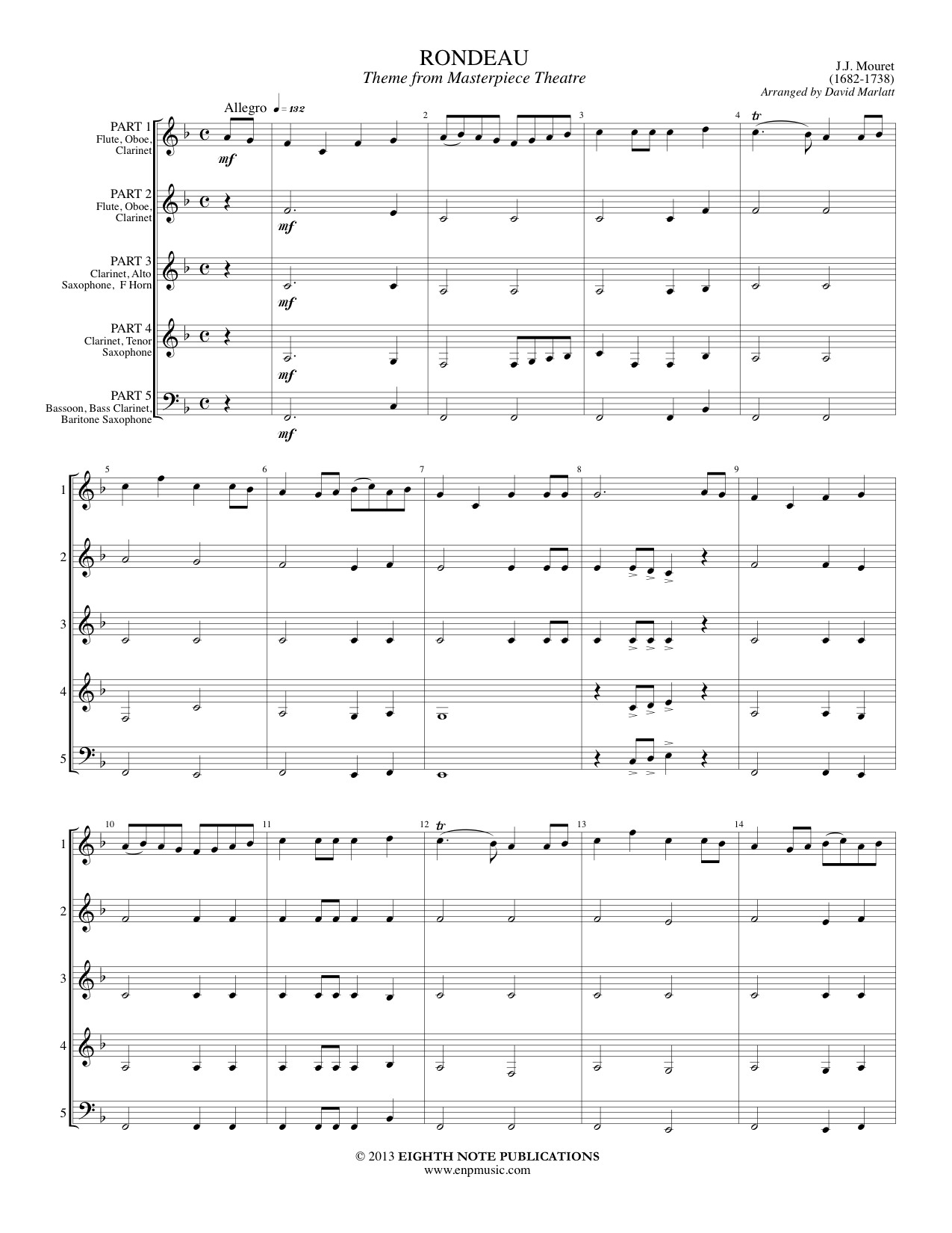 This incredibly famous piece has been arranged here for an interchangeable woodwind ensemble. Noble and majestic, this piece is a great example of Baroque style and articulations. This piece is suitable for a variety of performing venues including concert and contest use. |