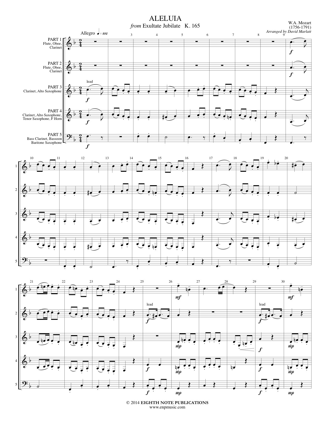 This vocal showpiece for soprano has been adapted for a showpiece within the ensemble. The string accompaniment has been simplified and divided between the remaining players. This is a great piece to show off a player and demonstrate the subtlety of the music of Mozart. |