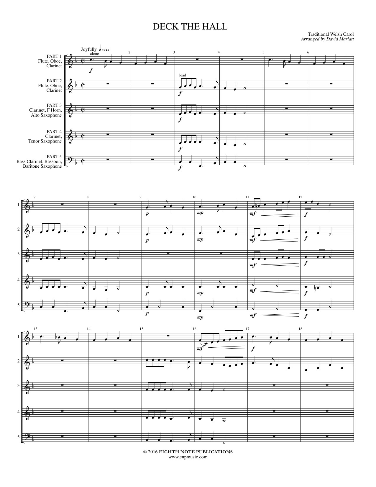 This is a fun traditional Welsh carol that lends itself well to a mixed woodwind ensemble. Melody is passed throughout the group as they wander through several variations of the melody. Fa-la-la-la-la-la