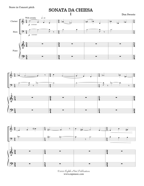 This is a commission for clarinet, horn and piano written for the musicians concerts at the Stratford Festival. The non-standard instrumental combination creates some interesting colours within this chamber ensemble. This large-scale multi-movement work is a great addition to the repertoire for university and professional musicians. |