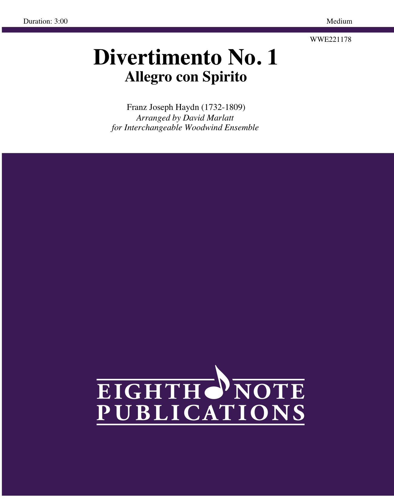 The Allegro con Spirito movement of the Divertimento No. 1 is from the Six Feldpartiten (open air suites), composed by Haydn in the early 1780’s. Originally scored for two oboes, two French horns, three bassoons, and a B-flat serpent, this piece works beautifully for any combination of woodwinds. |