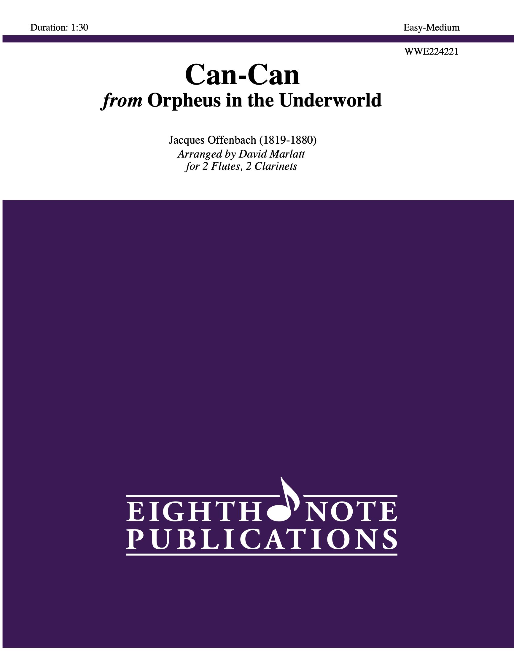 The famous Can-Can needs no introduction to students because of its use on commercials and cartoons. This arrangement for 2 flutes and 2 clarinets is limited in range and technical requirements. Players in the first few years of playing their instruments could tackle this famous melody. |