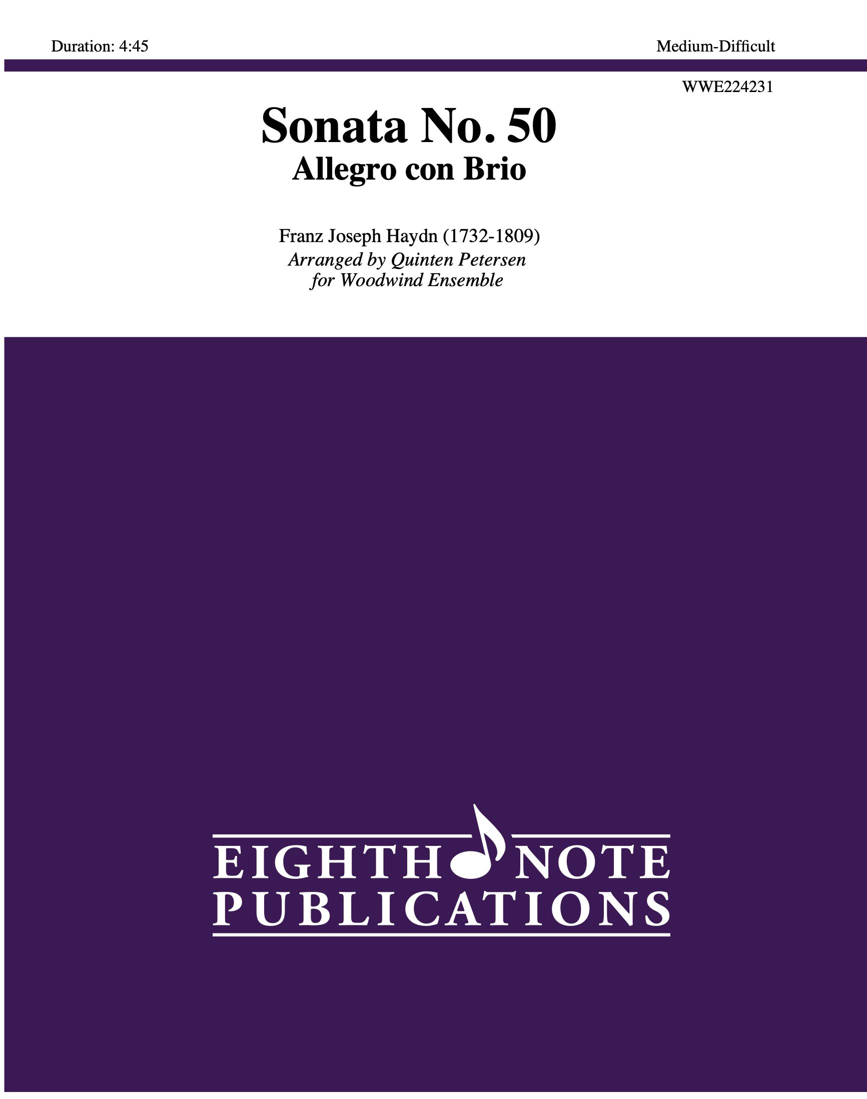 The Allegro con Brio movement of the Sonata No. 50 by Haydn was originally for pianoforte. It has been scored here for a large woodwind ensemble consisting of flute, double reeds, clarinet choir and saxophone choir.