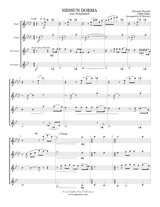 This is the ultimate tenor aria and what better instrument to give the solo to then the clarinet. A feature from the opening, this piece is ideal to show off the clarinet in the quartet. The original key has been altered to better suit an ensemble of 2 flutes and 2 clarinets. |