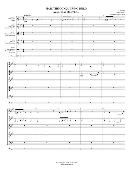 This version of the famous Hail the Conquering Hero opens with a solo, gradually adds voices and builds in dynamic, then the sound drops to a solo in the lowest part which starts the building again.