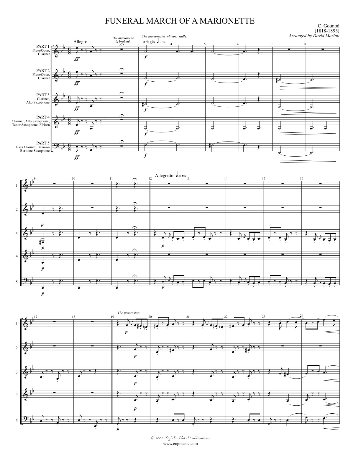 PART 1 - Flute, Oboe, Clarinet PART 2 - Flute, Oboe, Clarinet PART 3 - Clarinet, Alto Saxophone PART 4 - Clarinet, Alto Saxophone, Tenor Saxophone, F Horn PART 5 - Bass Clarinet, Bassoon, Baritone Saxophone |