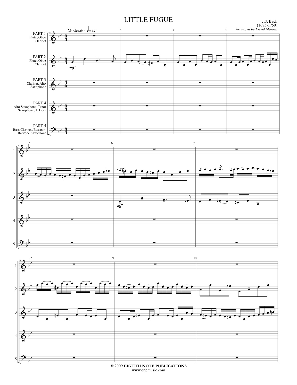 PARTS: PART 1 - Flute, Oboe, Clarinet PART 2 - Flute, Oboe, Clarinet PART 3 - Clarinet, Alto Saxophone, Tenor Saxophone PART 4 - Alto Saxophone, Tenor Saxophone, F Horn PART 5 - Baritone Saxophone, Bass Clarinet, Bassoon |