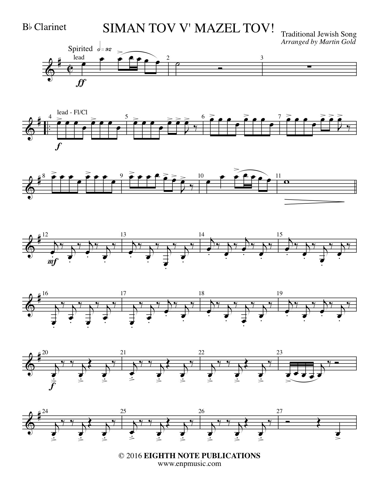 Siman Tov V Mazel Tov is a traditional Jewish song which is commonly heard at weddings, bar and bat mitzvahs, and other festive occasions; its joyous mood is evocative of a party in full swing. Throughout this lively arrangement, the melody gets perpetually tossed around the group, so everyone gets a chance to be the life of the party, even if only for a few bars. |