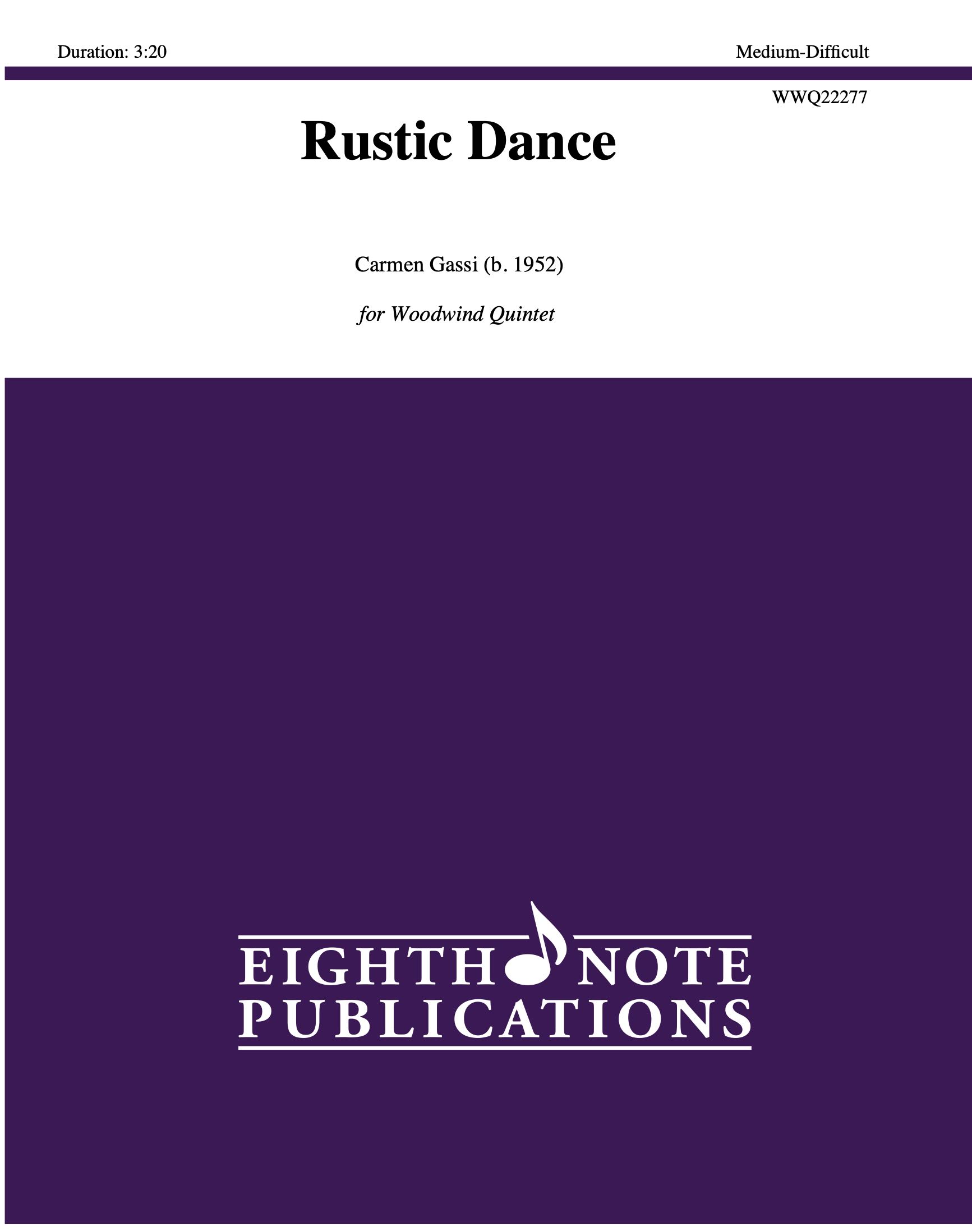Although Rustic Dance is part of the Rustic Suite it is quite sustainable as a stand alone work. Based around an 11 note idea, Rustic Dance features opportunities for each member of the quintet to play both as a soloist and as part of a duet, trio or sometimes quartet. Unexpected rhythmic and harmonic episodes will provide a fun but rewarding experience as your group explores Rustic Dance. |