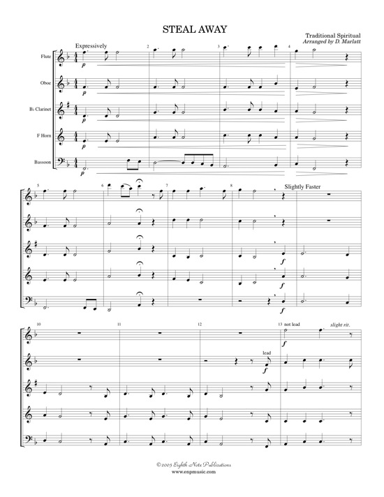 Spirituals have found their way into the standard repertoire of vocalists and instrumentalists. The lyrical tunes combined with the powerful message they tell affect us all. This is a simple and beautiful melody that is kept in the traditional chorale-style in this arrangement. This is not very difficult at all and the bassoon has some interesting moving lines to propel the work along. |